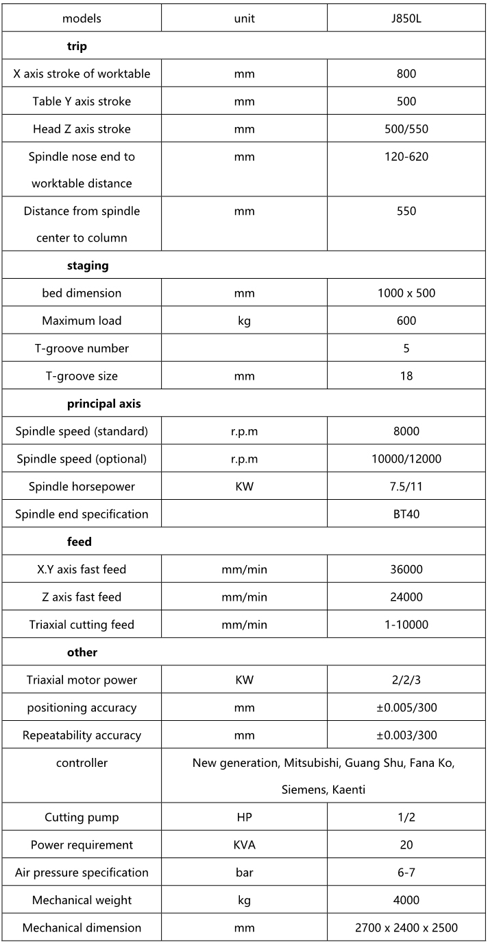 Using large size rail, Z-axis hard rail strengthening structure design, greatly improve the processing strength and machine tool steel, with high efficiency servo motor, so that this series can obtain the best production efficiency, is a part, Selection of the best type for strong milling of iron and steel parts.