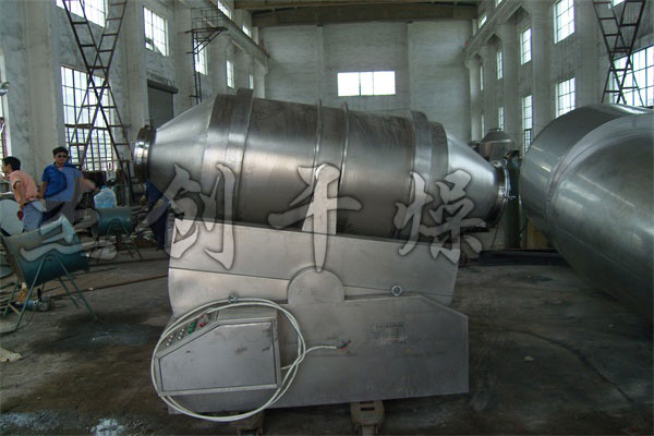 EYH 二維運動混合機的轉(zhuǎn)筒可同時進行二個運動,一個為轉(zhuǎn)筒的轉(zhuǎn)動,另一個為轉(zhuǎn)筒隨擺動架的擺動。被混合物料在轉(zhuǎn)筒內(nèi)隨轉(zhuǎn)筒轉(zhuǎn)動、翻轉(zhuǎn)、混和的同時,又隨轉(zhuǎn)筒的擺動而發(fā)生左右來回的摻混運動,在這兩個運動的共同作用下,物料在短時間內(nèi)得到均勻的混合。EYH二維混料機適合所有粉、粒狀物料的混合。