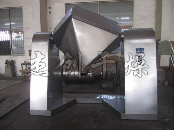將物料裝入方錐形密閉混合桶內(nèi),料斗對(duì)稱的軸線與回轉(zhuǎn)軸軸線成一夾角,不同組分物料在密閉的料斗中進(jìn)行三維空間運(yùn)動(dòng),產(chǎn)生強(qiáng)烈翻轉(zhuǎn)和擴(kuò)散收縮作用,達(dá)到很好的混合。