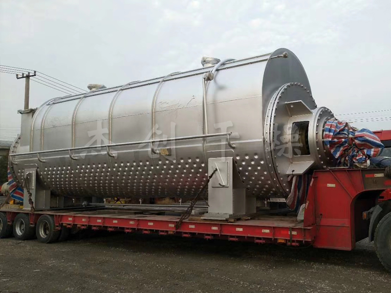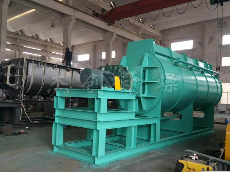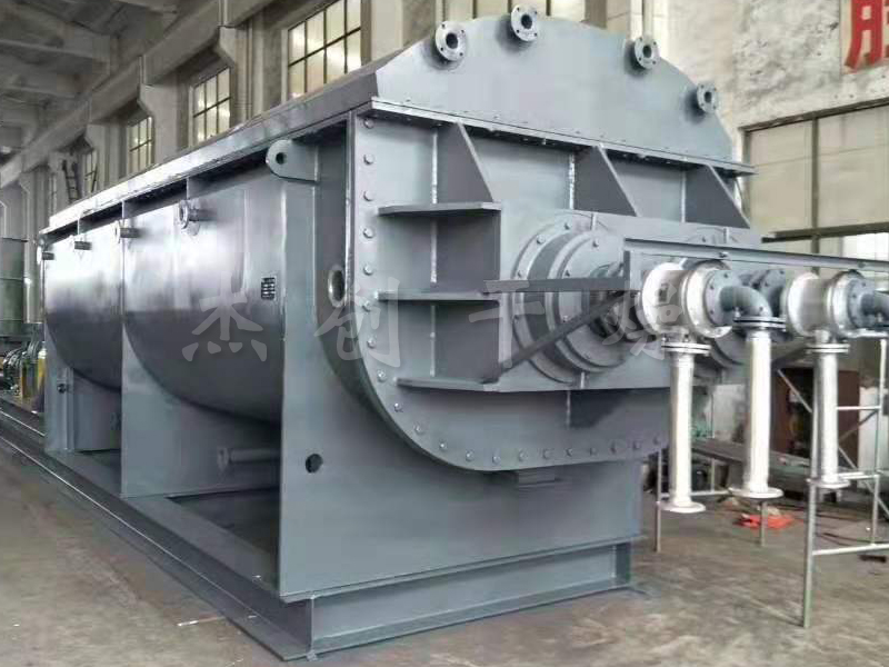 ??物料由進(jìn)料口送入干燥機(jī),工作介質(zhì)在本體外殼和空心軸之間流動(dòng),通過(guò)C型夾套、空心軸和軸上焊接的空心盤(pán)片傳遞熱量,物料被間接加熱干化,產(chǎn)生的水蒸氣聚集在干燥機(jī)的穹頂,由載氣帶出干燥機(jī)??招谋P(pán)片與軸基本垂直,通過(guò)盤(pán)片上的推進(jìn)/攪拌器的作用,對(duì)物料進(jìn)行攪拌、推進(jìn),不斷更新干燥面,從而實(shí)現(xiàn)干燥的目的。用蒸汽間接加熱,通過(guò)攪拌物料使水分更快蒸發(fā),進(jìn)行干燥。