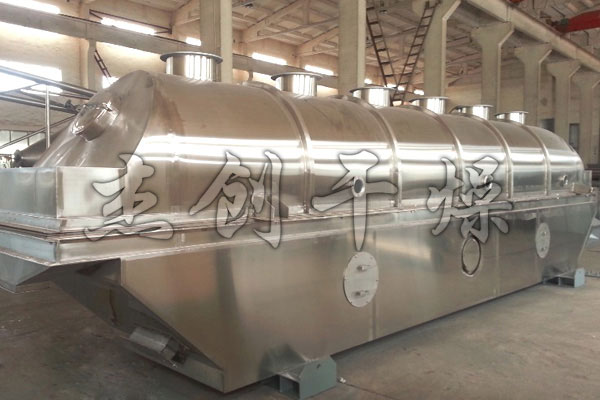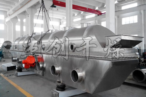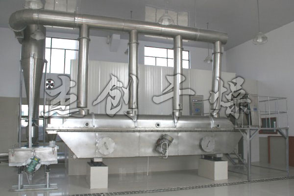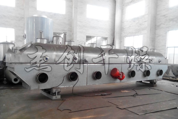 物料自進料口進入機內, 在振動力作用下, 物料沿水平方向拋擲向前連續(xù)運動,熱風向上穿過流化床同濕料換熱后, 濕空氣經旋風分離器除塵后由排風口排出, 干燥物料由排料口排出。