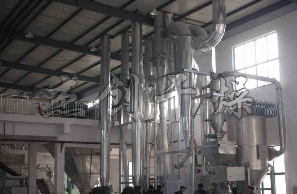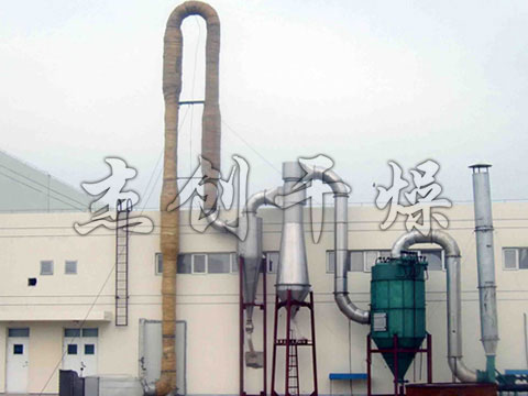 上述這類物料具有特殊性:比重輕,加料難,易燃,易爆。針對(duì)此情況,我公司技術(shù)部門開發(fā)研制的新型氣流干燥機(jī),在原氣流干燥機(jī)的基礎(chǔ)上改進(jìn)了加料形式,解決了“架橋”現(xiàn)象。創(chuàng)新改進(jìn)了旋風(fēng)分離器,解決了物料翻滾不出料的現(xiàn)象。系統(tǒng)集成,控制先進(jìn),超溫報(bào)警連鎖關(guān)閉熱源,有效解決了溫度過(guò)高引起的燃燒爆炸問(wèn)題。